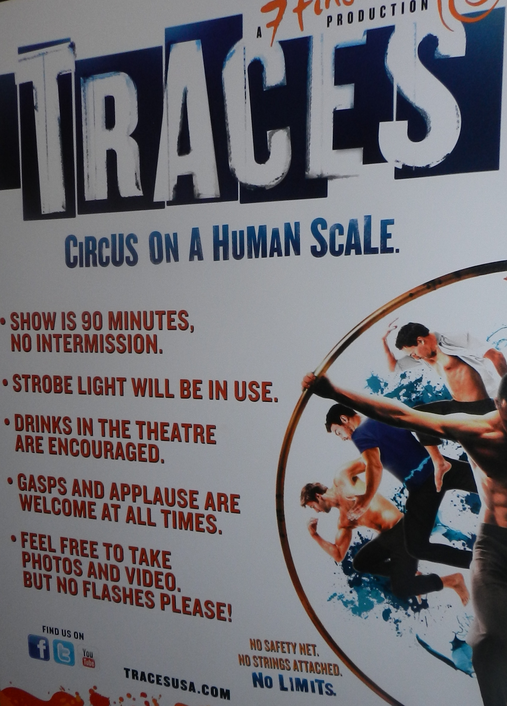For those of you who don’t know Traces is a circus performance, but like no other circus you have ever experienced. There are no clowns, three rings, or animal acts but rather a fusion of contemporary dance, acrobatics, theatre, poetry and music. It’s like the circus all grown up with lots of gritty raw emotion.
