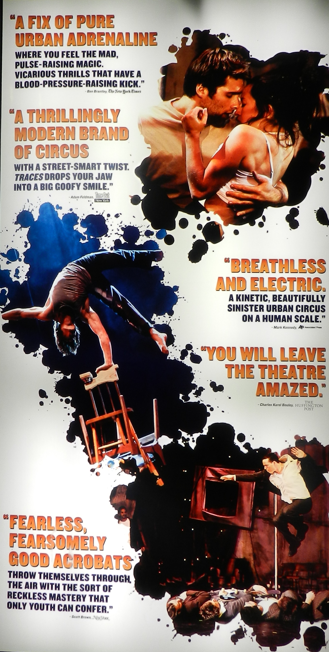 My husband and I were blown away by Traces. It was an amazing show that kept us riveted for 90 minutes. From the explosive show opener to the exciting closing I was on the edge of my seat the entire time. The high-flying acrobatics and the death defying stunts left me “Oohing and aaahhing” the entire show.