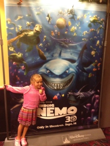 Last week Amelia and I trekked into Manhattan to see a preview of Finding Nemo in 3D. Amelia seems to always luck out when I get tickets to previews, maybe it’s because she is the only one who is not playing soccer and therefore has the most free time.