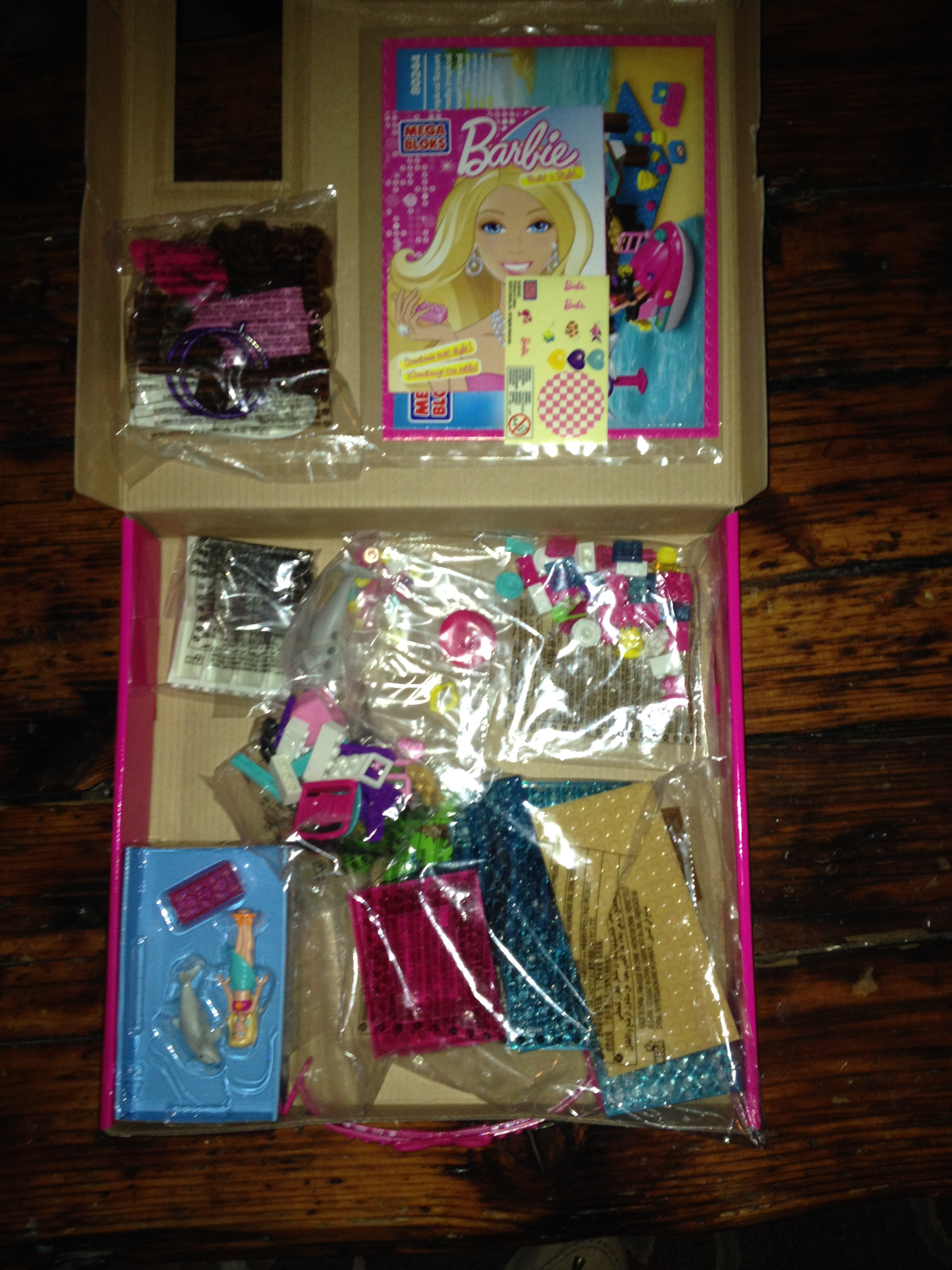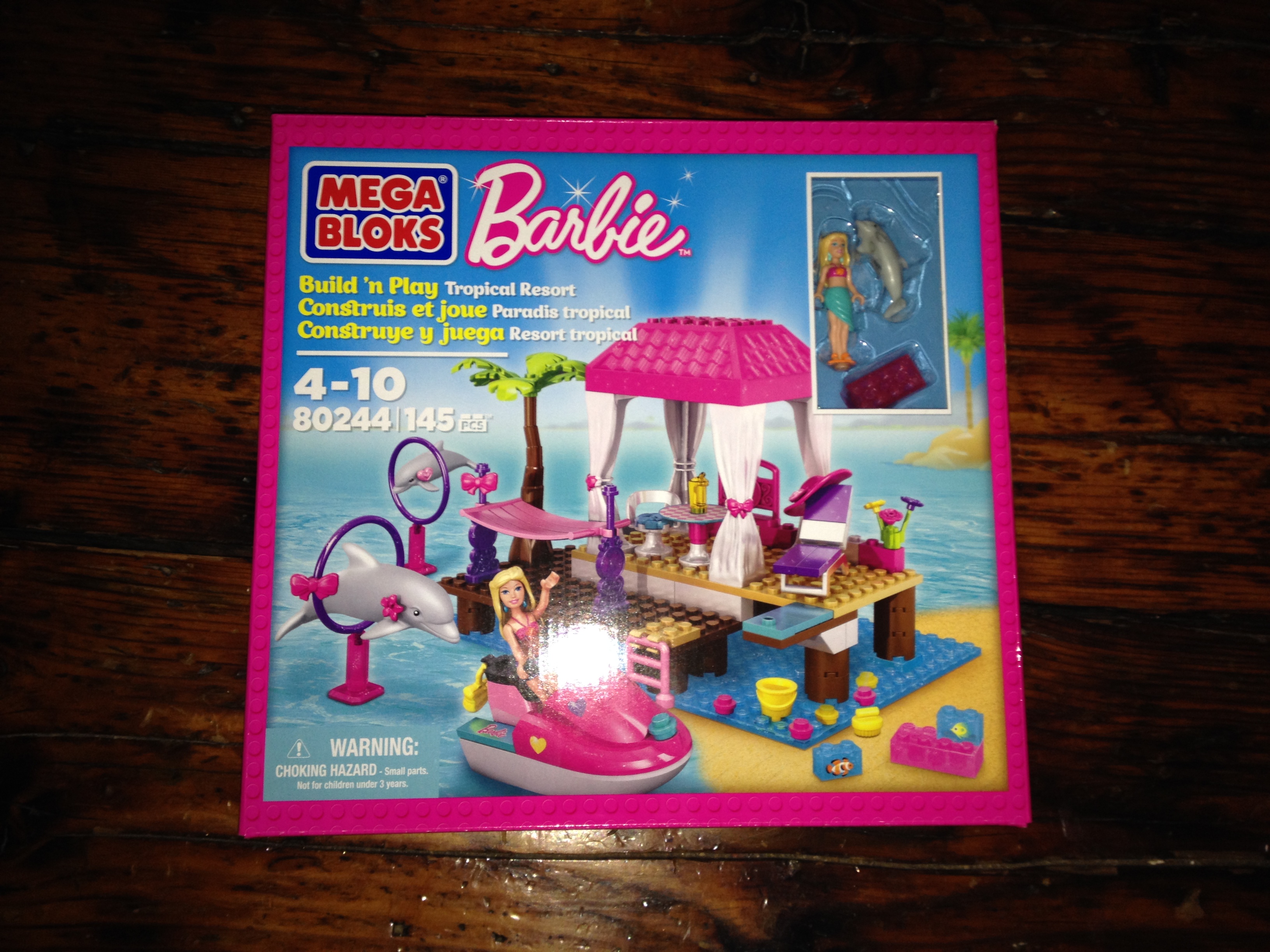 Amelia couldn’t wait to rip into the Megabloks Barbie Build-n-play Tropical Resort. Unfortunately for her we were so busy last week I made her wait till the weekend in order to open it. She was so excited and everyday kept asking me how many more days until she could do her Megabloks review.