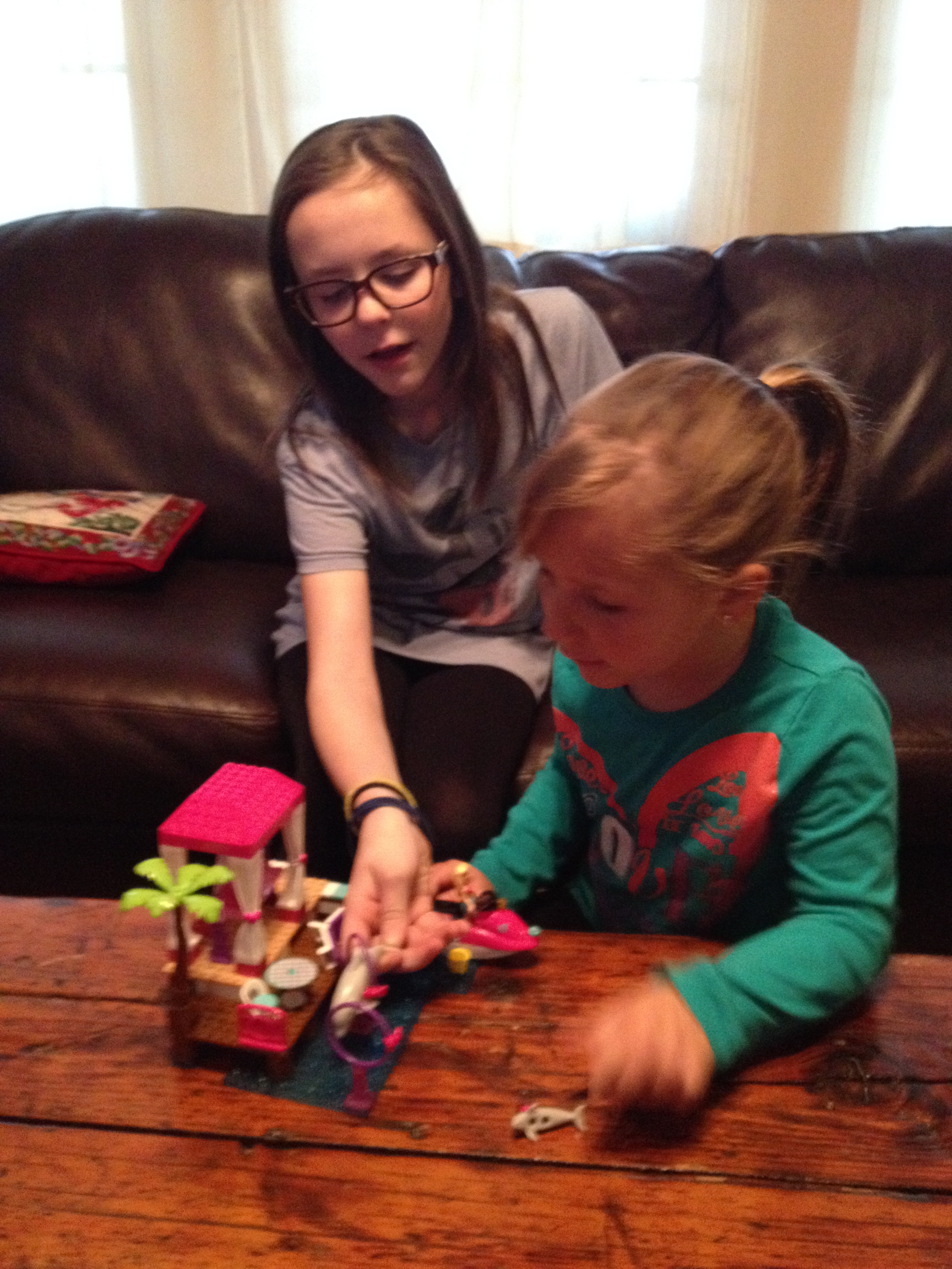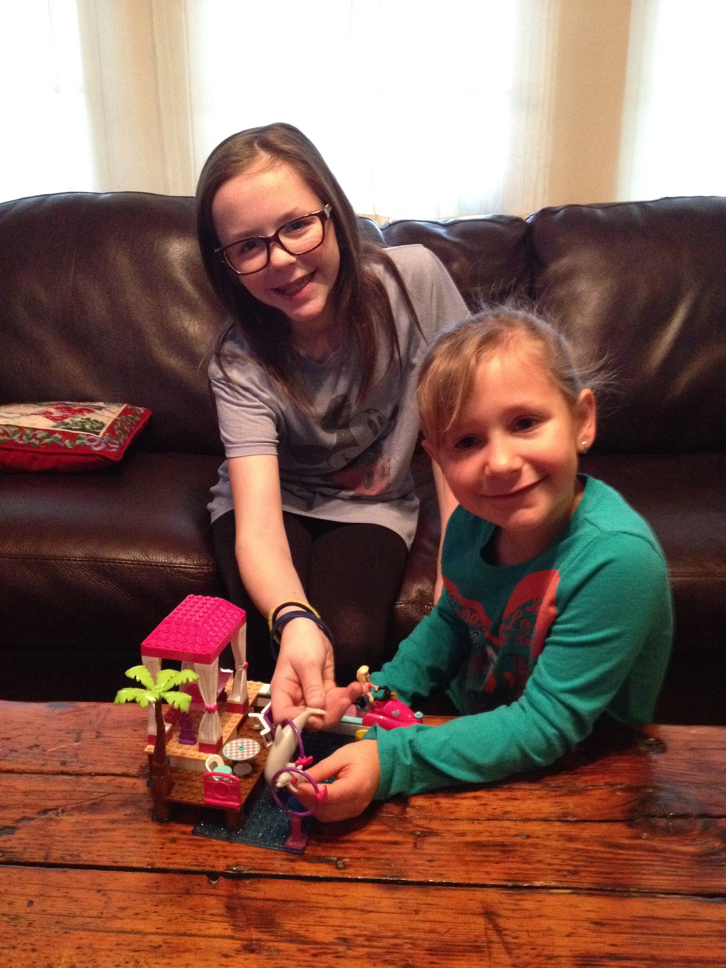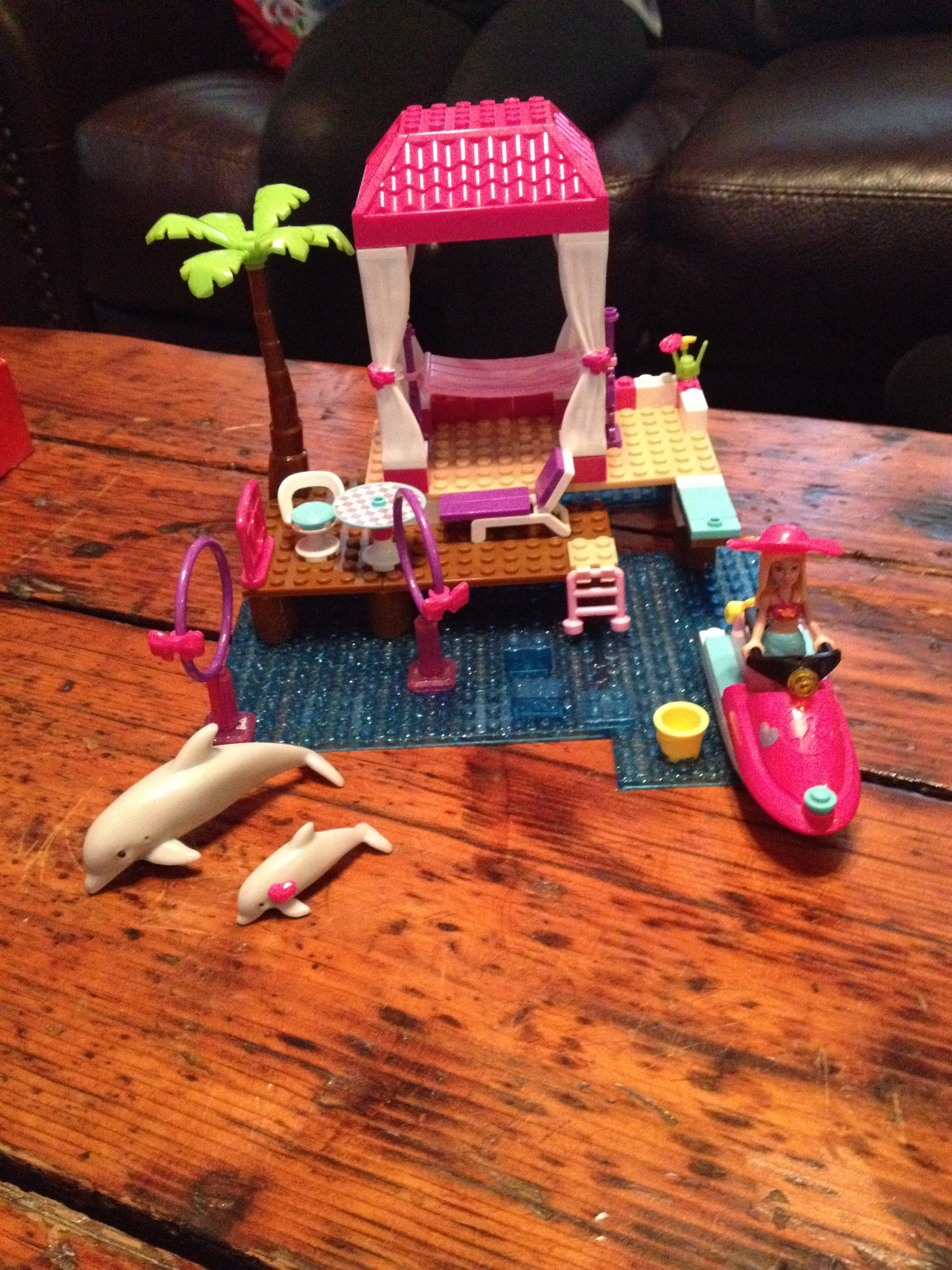Finally on Saturday morning we sat down together to play with it. Since I have all girls I have very little experience with Megabloks and was eager to check it out. Since I am not the best direction reader BJ jumped in and helped her put it together. It took about 15 minutes to put it together and Amelia at 6 definitely need assistance assembling Barbie’s Topical Resort. Grace 10 jumped in and started helping and was able to follow the directions but had some trouble snapping the pieces together.