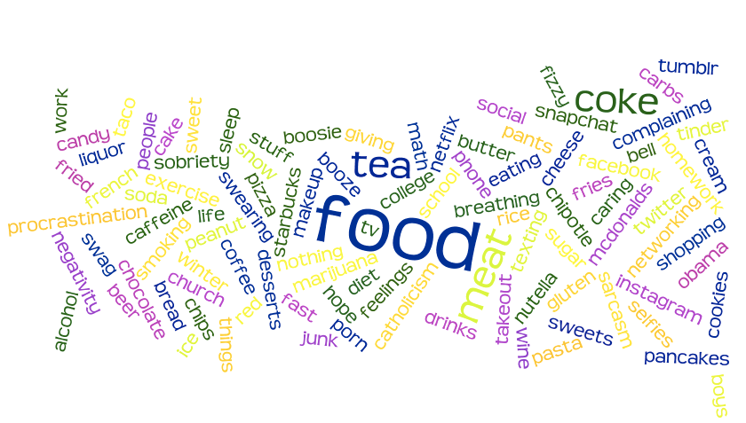 Once we figure out how to get ashes we have to contemplate what sinful thing we would like to give up for the next 40 days. Twitter compiled a list of the top 100 things people tweeted about giving up for Lent this year.