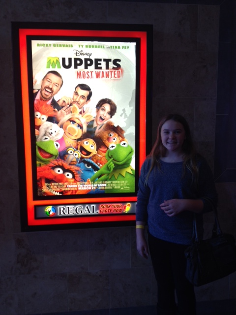 Last week I had quite a dilemma. Here I was with two passes to Muppets Most Wanted and no child to take. My two youngest daughters had dancing class and my oldest was away on a college trip- (Which is another topic for another day since I am in complete denial that she may be going to college one day)