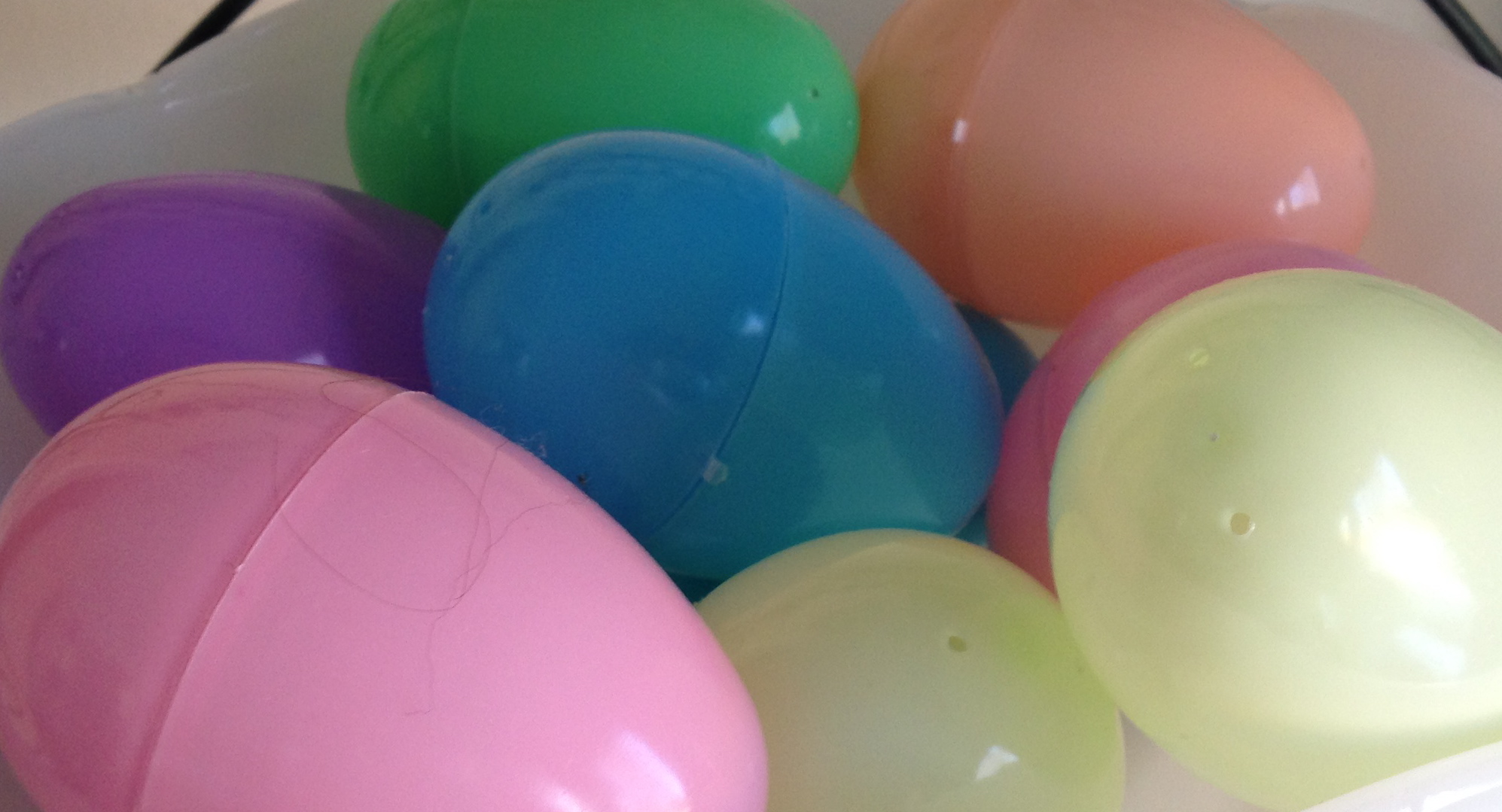 - Spray the inside of 12 large or 24 small plastic eggs with non stick cooking spray.