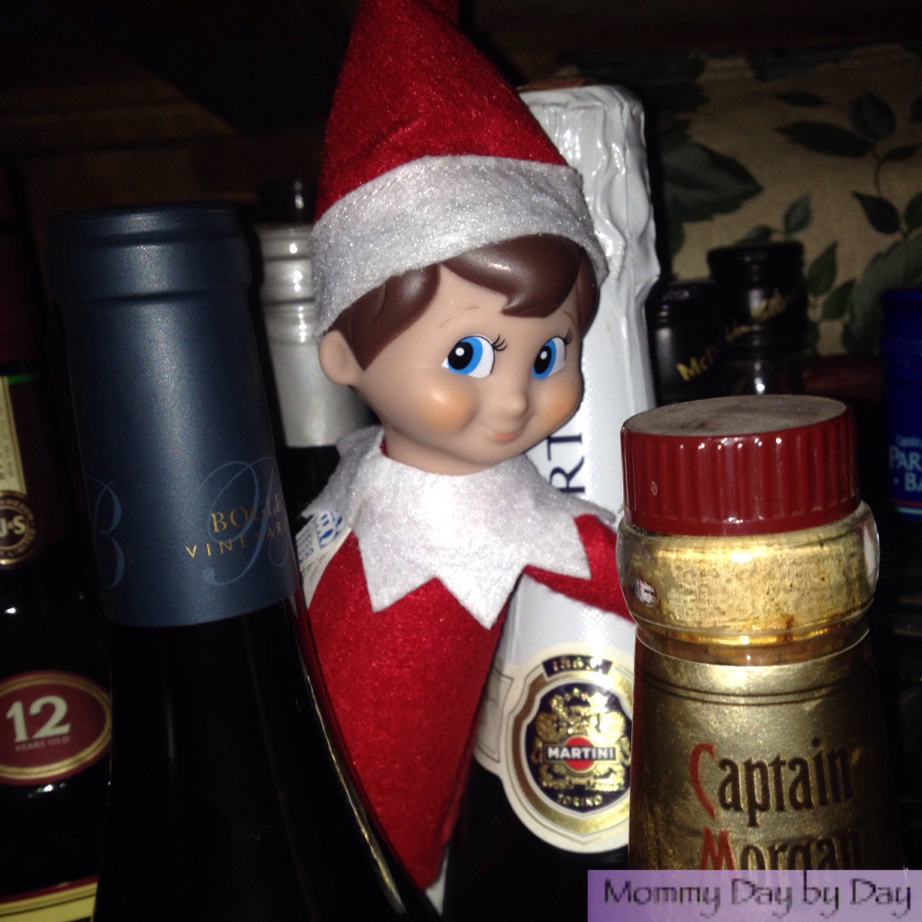 Apparently my Elf has an alcohol problem because I found him hiding in the liquor cabinet. I guess he has a little Captain in him.