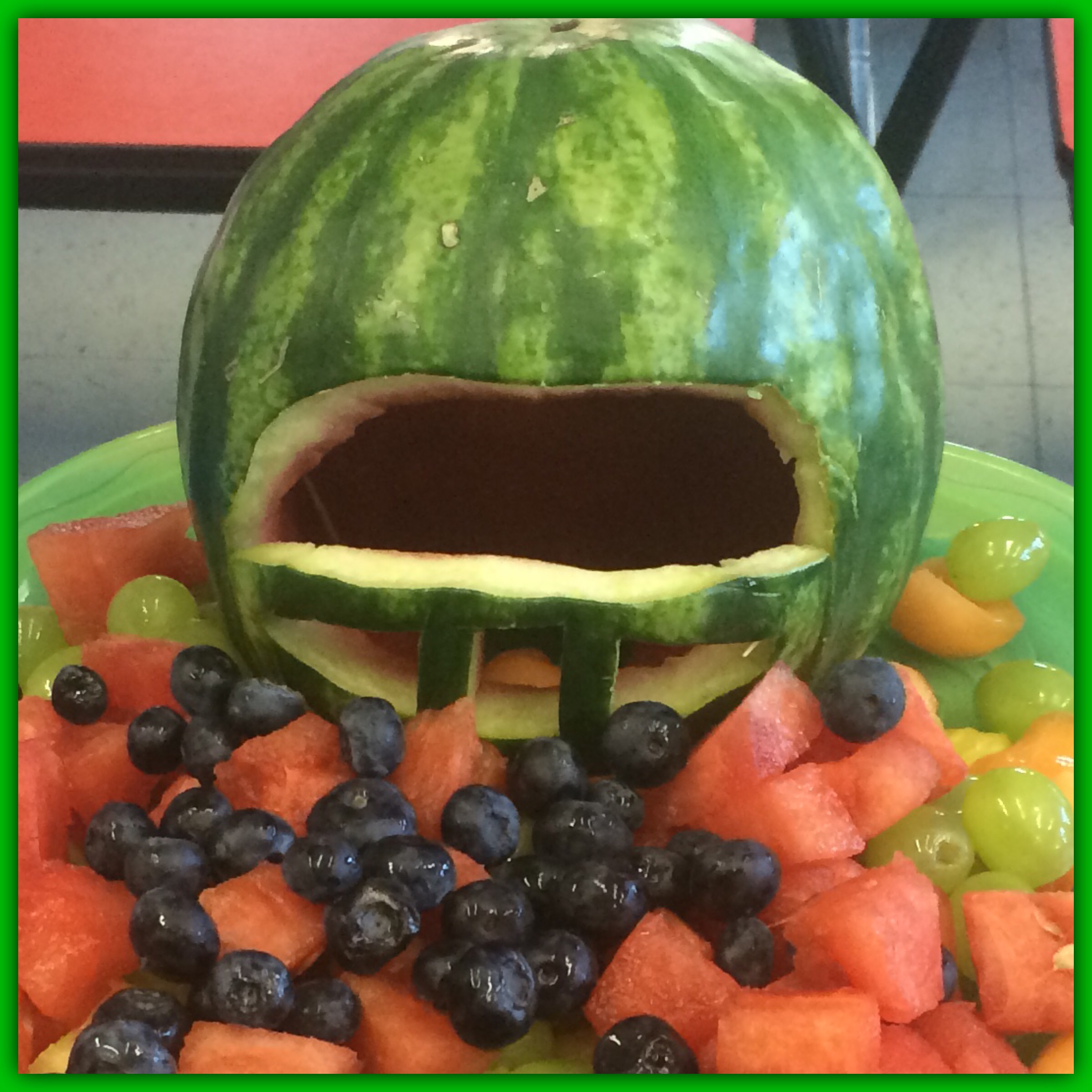 Turn the watermelon upside down and carve a football helmet on the face. Add the fruit and you have a fabulous football fruit platter.